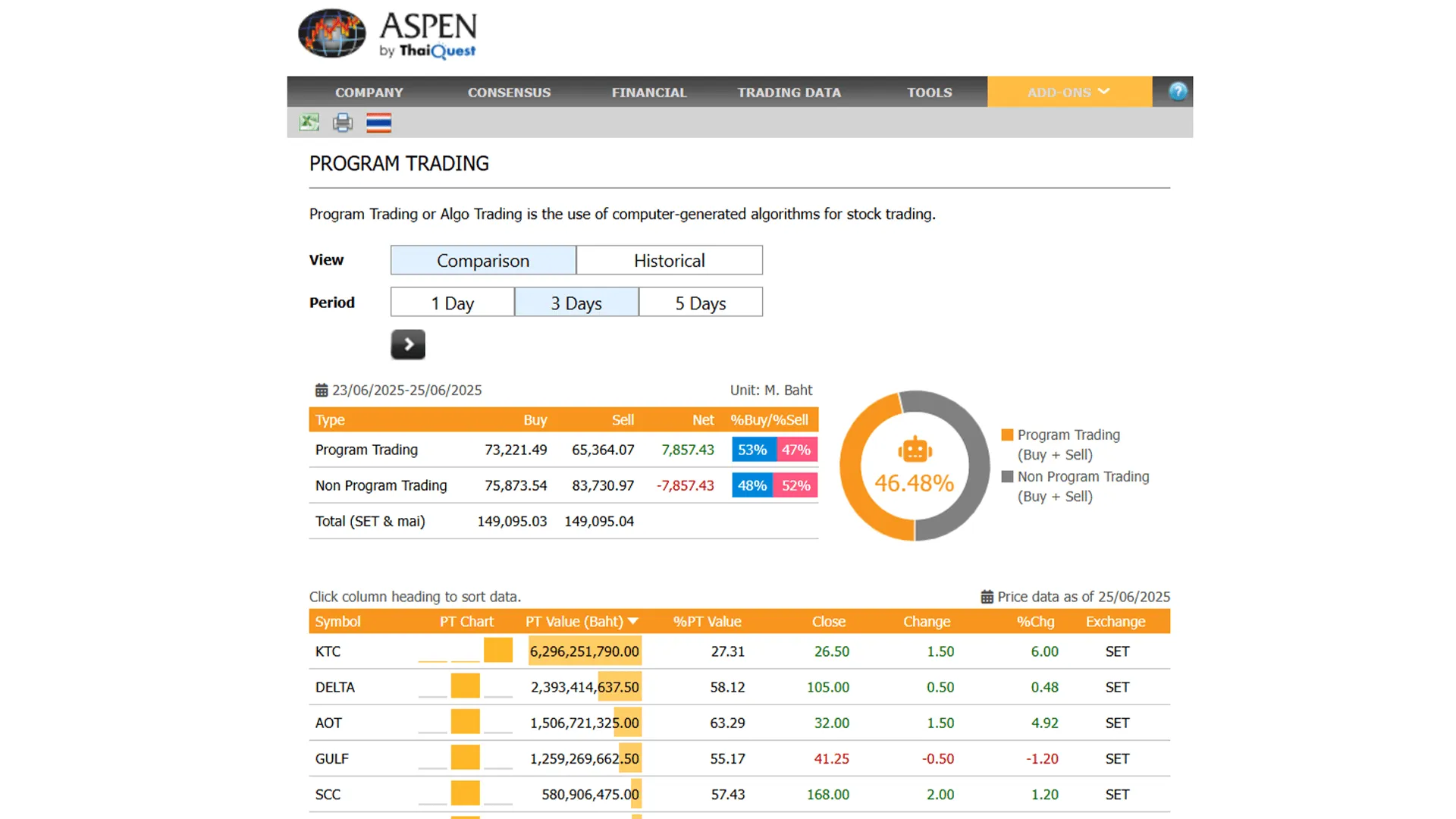 ข้อมูลเชิงลึก: วิเคราะห์ตลาดด้วยข้อมูลสำคัญ เช่น Analyst Consensus จากสมาคมนักวิเคราะห์หลักทรัพย์, รายงานการซื้อขาย NVDR, ข้อมูลการขายชอร์ต, การขายหุ้นของผู้บริหาร และการซื้อขายแบบ Program Trading